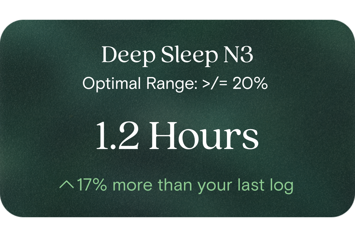 Deep sleep N3 supports essential recovery functions—releasing growth hormone, rebuilding tissues, consolidating memory, and stabilising metabolism. Consistently getting enough deep sleep helps maintain balanced energy, sharper cognition, and improved overall wellbeing.