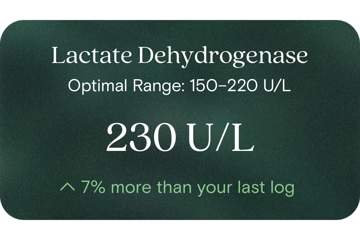 Tracking LDH trends can help you understand your body’s energy handling, metabolic adaptability, and response to physical stress or training loads, all of which support proactive metabolic health and longevity.